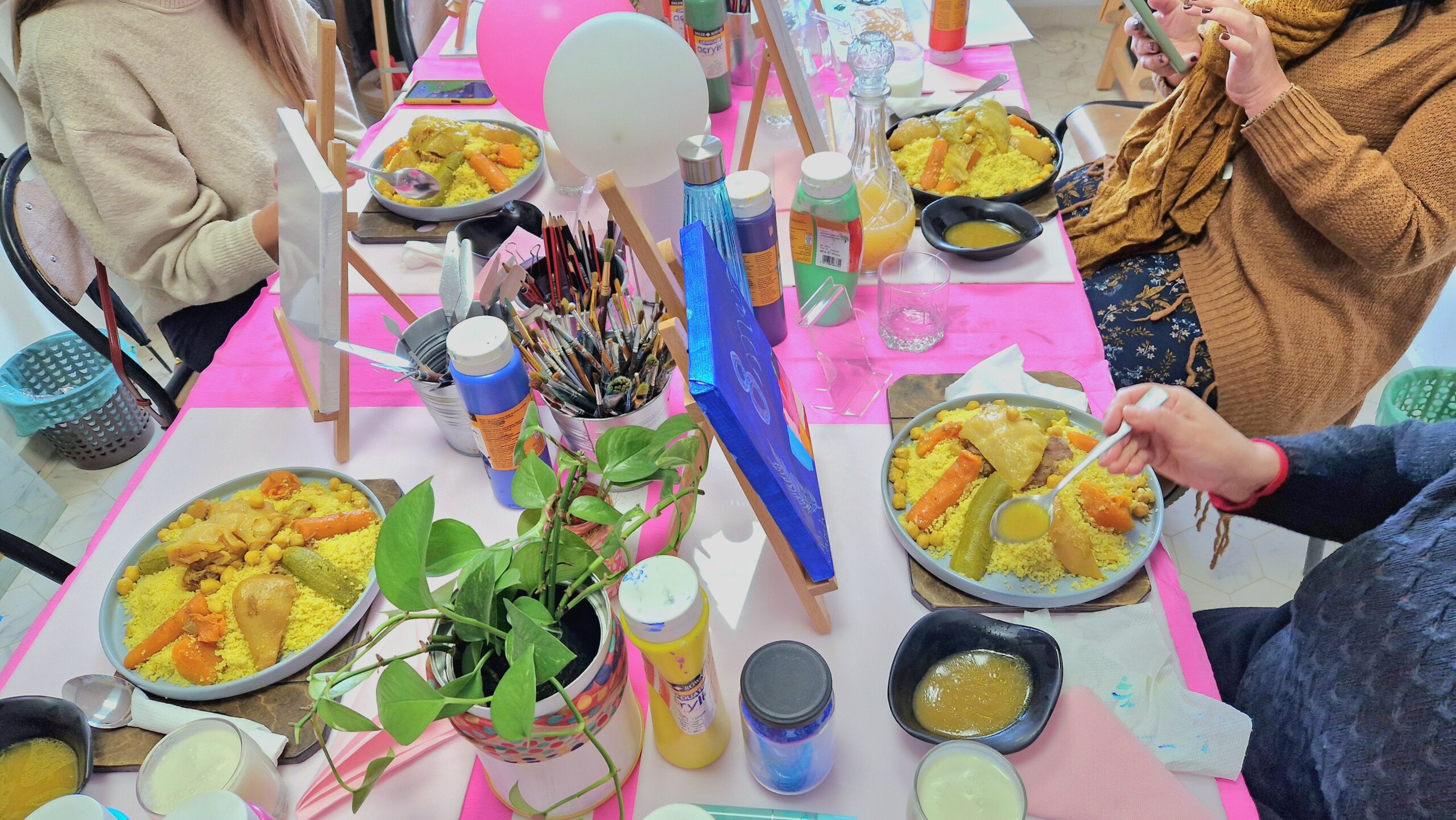 Atelier de peinture clôturé par un repas de couscous traditionnel