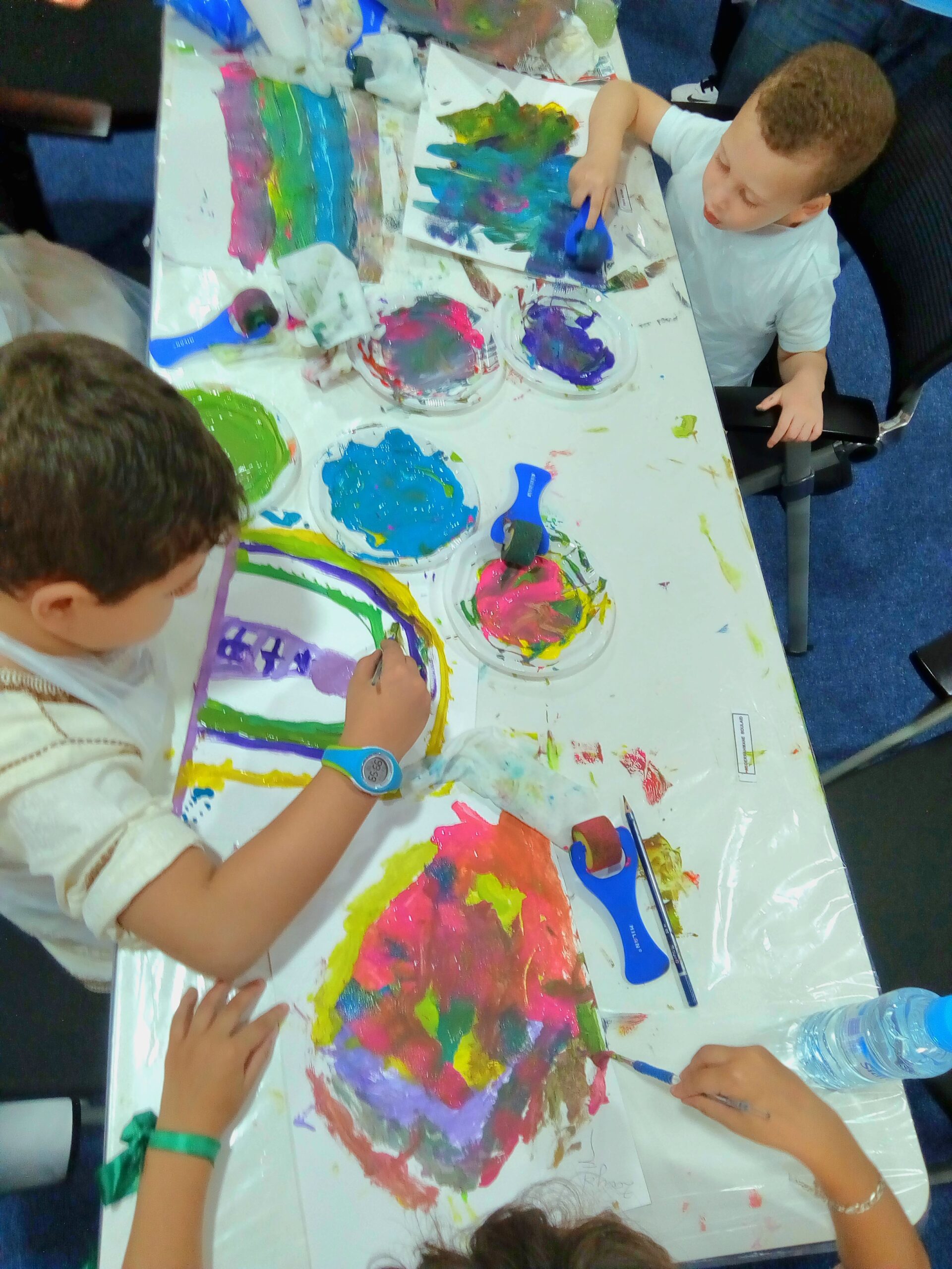 - Atelier artistique de peinture et de couleurs où enfants et parents créent ensemble.